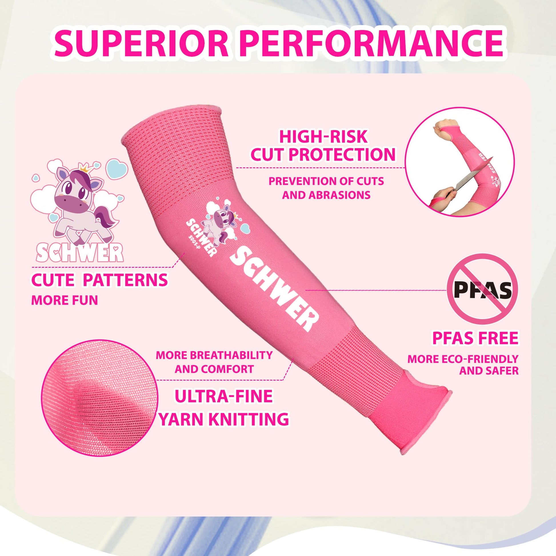 Mini-kiddo Ansi A6 Cut Manges de brazo resistente para niños, rosa