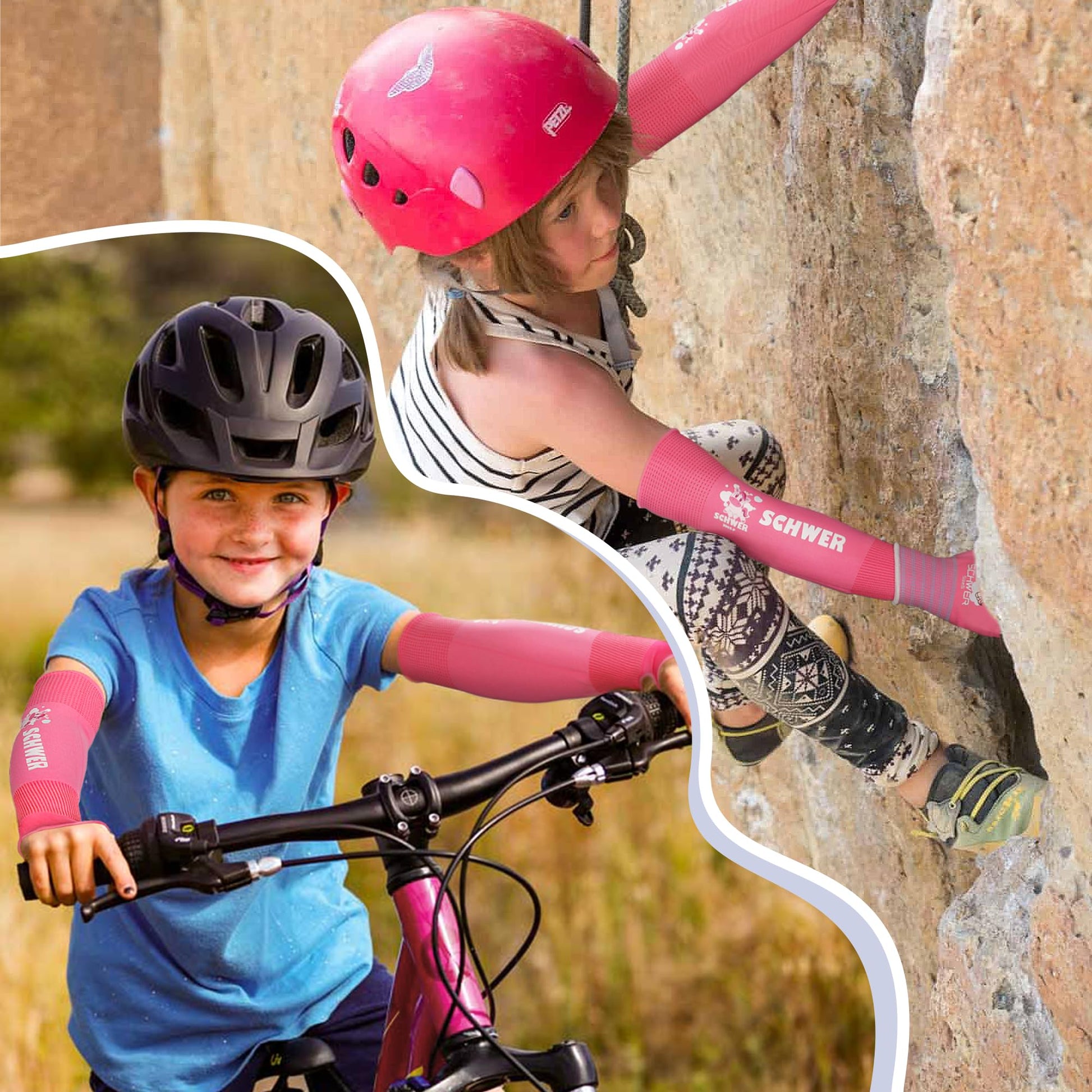 - Hermosos colores y patrones encantadores: las mangas de trabajo comunes tienen una apariencia simple y carecen de interés infantil, lo que dificulta despertar el interés de los niños, pero nuestras mangas para niños para ciclismo con colores intensos y patrones lindos pueden ser un accesorio brillante para las actividades de los niños y aumentar la confianza en sí mismos.