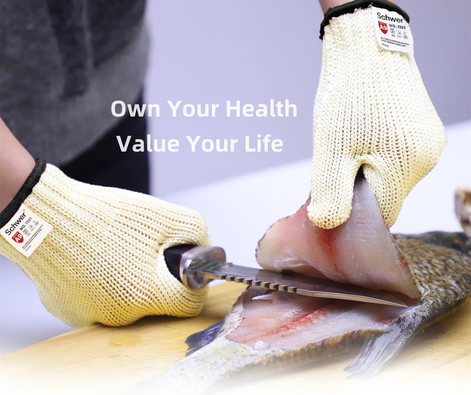 PR1501, food-safe gloves with A9 cut protection, ideal for kitchen prep, mandoline, oyster shucking, meat cutting, and industrial tasks.